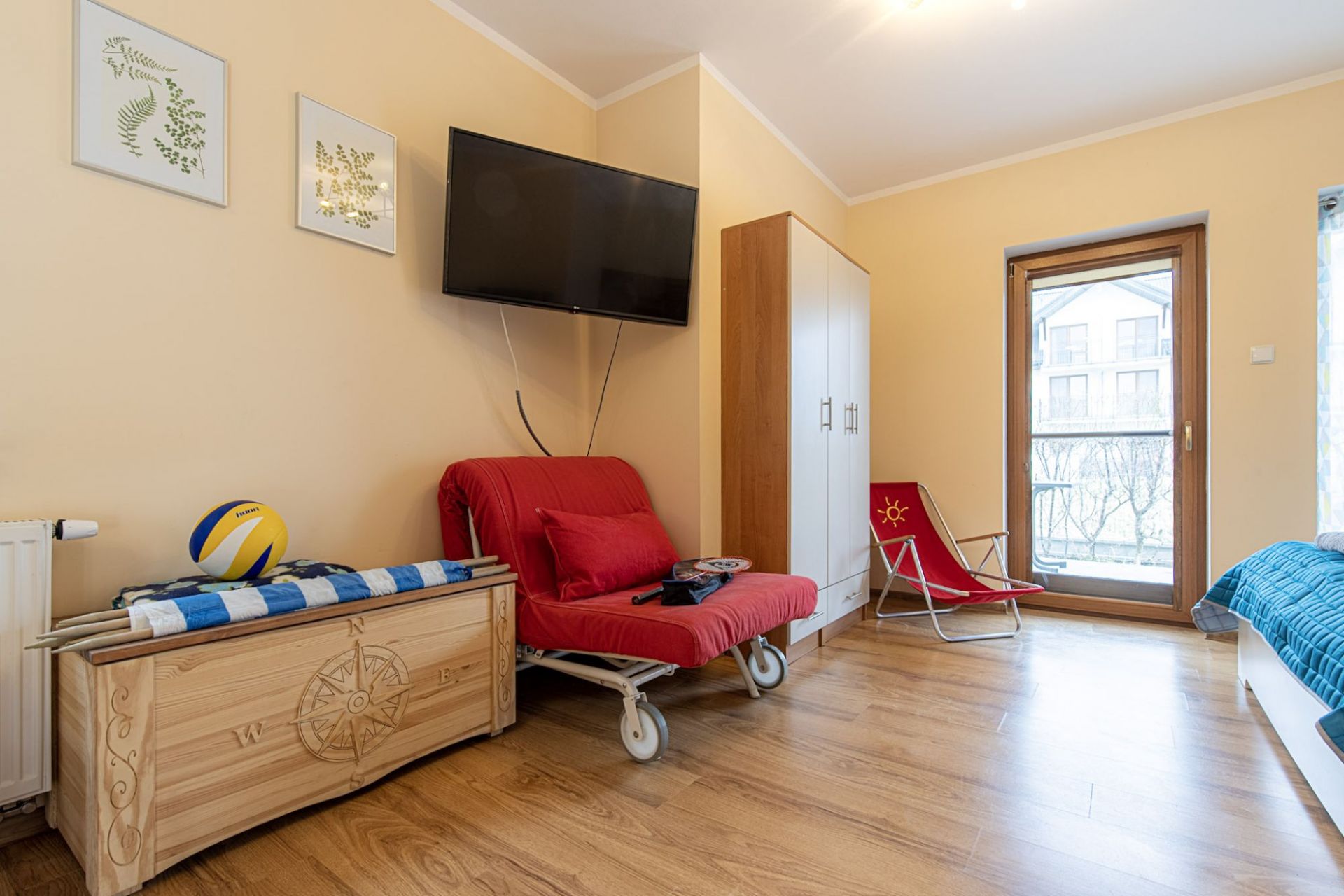 4 osobowy Apartament Rodzinny o powierzchni 30 m2 jest zlokalizowany na parterze. Apartament posiada niezależne wejście, łazienkę z prysznicem i jest wyposażony w: aneks kuchenny z lodówką, kuchenkę, czajnik, garnki, patelnie, sztućce, komplet naczyń i niezbędne akcesoria kuchenne, suszarkę do włosów, komplet ręczników, stół oraz wygodne, tapicerowane fotele, szerokie łóżko dwuosobowe (160 cm szerokości) sofę dwuosobową oraz rozkładany fotel, przestronny taras i zestaw mebli ogrodowych, moskitiery okienne i balkonowe, leżaki plażowe i parawan, suszarkę na ręczniki, SMART TV 43' 4K, Internet Wi-Fi. Na życzenie zapewniamy także: żelazko oraz deskę do prasowania – bezpłatnie, wanienkę, krzesełko do karmienia, nakładkę sedesową, podest – bezpłatnie, łóżeczko turystyczne dla dziecka wraz z pościelą – 10 zł/dobę.